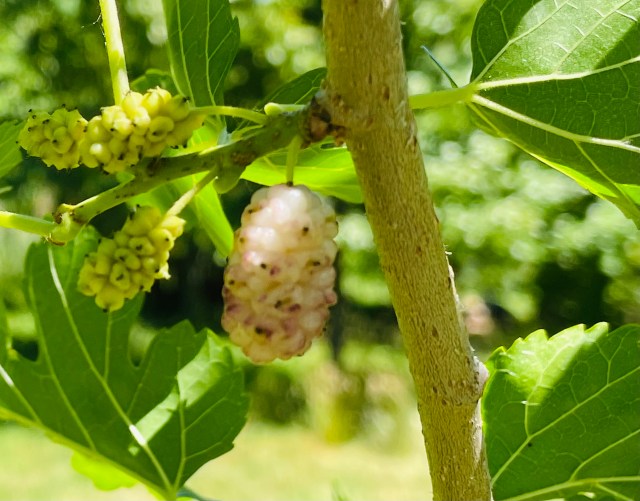 From seed everyone wants the pure mulberry. I think they are all pure. Under the banner of complex heterozygosity the mulberry does not care about your love of pure. Pure in this sense means combining the nearest plants into one unadulterated whole. The whole reflects the individual as a universal mulberry oneness. Is this cosmic or me lost in interpretation? Both. The mulberry has other plans from an evolutionary standpoint. It’s an out breeder. It can be dioecious, monoecious or both on the same tree or not on the same tree. More than the apple it hides its origins to the point even modern day genetics has thrown its hands up. I like that. It’s a plant with a plan. I’m a follower. One fruit and you too will follow.