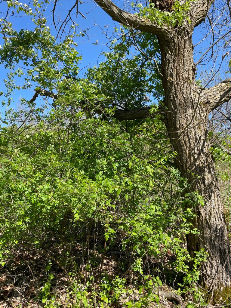 At my tree farm, I began seeing a lot of different seedlings growing in my plantings. I did not want to remove them thinking they might add some value to the planting. I purposely positioned many of my original trees based on the soil, topography and wind. I did not measure it to any degree because it was such a pain carrying around a tape measure in the thick tall grass. It took too long to tap in stakes or wire flags where to plant. It was from here I began to use the triangle closely packed spherical spatial patterns emulating Buckminister Fuller in his design science detailed in his Synergetics books. I also got pretty good at eye-balling it. As the trees matured the animals used those trees for cover, roosting and food and soon seeds were planted in these areas using the germplasm from my farm. Rather than cut these trees out, I pruned them upwards limbing up the lower limbs, partially removing other shrubs and trees and favoring the seedlings within this emerging forest. My plantings were growing well but the next generation were more resistant to disease and faster growing from direct seeding. The seedlings were never too dense and the plants like multiflora rose allowed for even more diversity to establish as it prevented browse as new seeds were dropped and covered by leaf litter. Star thistle and shade thinned the grasses which aided further direct seeding into the planting areas.