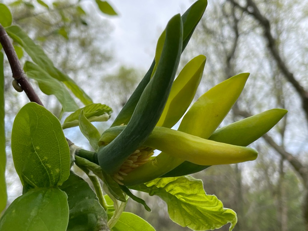 Now I had a robust population all from one three foot diameter tree hardy in Michigan. In the meantime, I could sell the trees and begin a more robust collection. I joined the Magnolia Society and found that several other individuals had located trees of this forest giant and its cousin subspecies subcordata. Subcordata or Yellow Cucumber magnolia was considered smaller and more compact in shape. I grew them all. As my forest took shape so did the Cucumber magnolia. Now there was a wind reduction aspect to my oaks, walnuts and hickories. Each tree was surviving and growing nicely. The roots of the trees were going deeper and some of the trees began to fruit. This process took twenty five years to fully realize. This was one of the longest tree crops in terms of years to fruiting. The juvenile age to maturity is long passing even hickory. Even today after thirty years, I still have a few very healthy trees that flower but do not set seeds. They are waiting for the right time. Any time, it will happen.