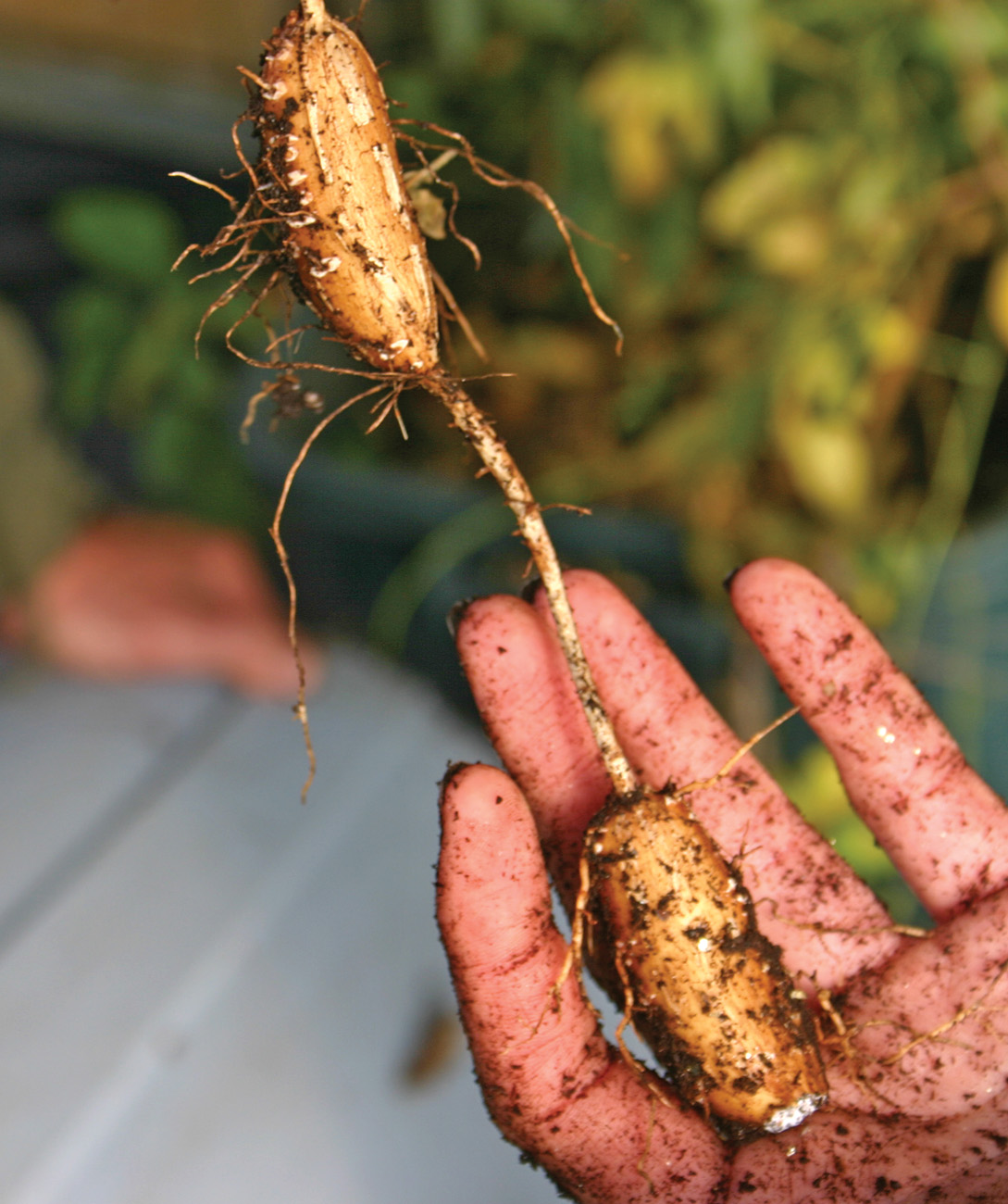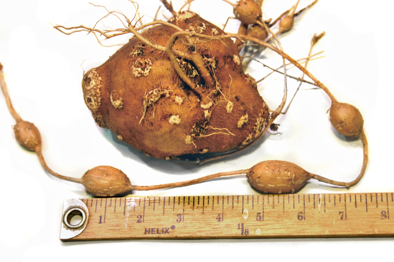 One of things I noticed about this particular crop was that the best selections were from fifty years ago from extremely southern U.S. locations. I found a restuarant that used them and several other breeding populations that were being developed. I had a lot of help from outside sources to the point, I did not even look into the Michigan genotypes. One of them was from a kayaker and explorer of rivers. Another was from a retired doctor who had an interest. It was from this springboard of diversity that led me to highly vigorous selections that could tolerate drier soils than the species as well as have super clustering tuber yields of small tubers to the point where the protein yield would equal soybeans per acre. I had an intern do several measurements using tubers in our planting beds to check yields. The crop was changing before my eyes. I could see where this might be a case of harvesting and processing to make the crop profitable on a commercial level. This was quite a miracle tuber crop for me and without help I could never have released these selections to the public. Some were purchased but many were seed and tuber exchanges done over a decade or more.