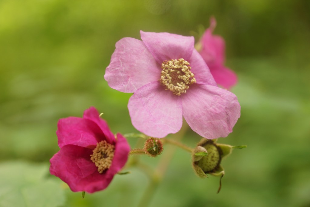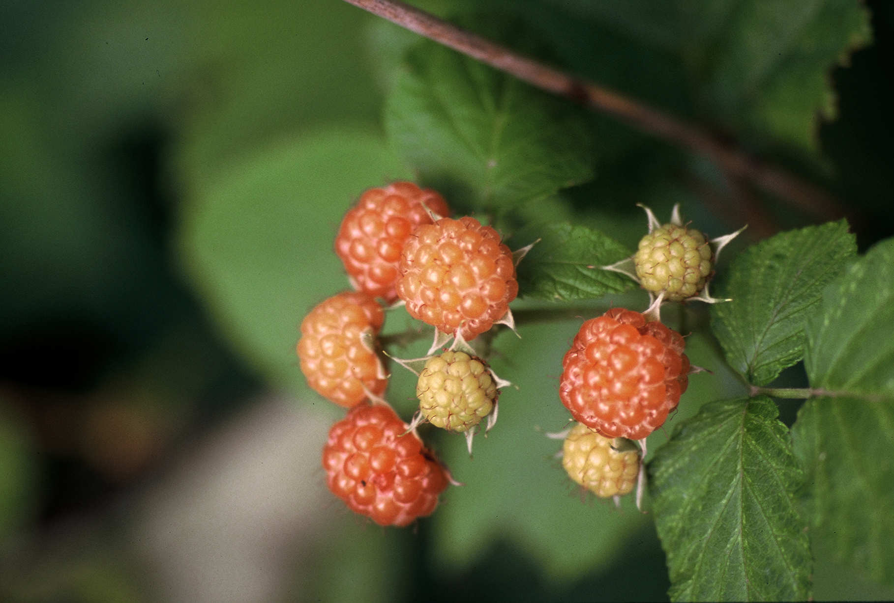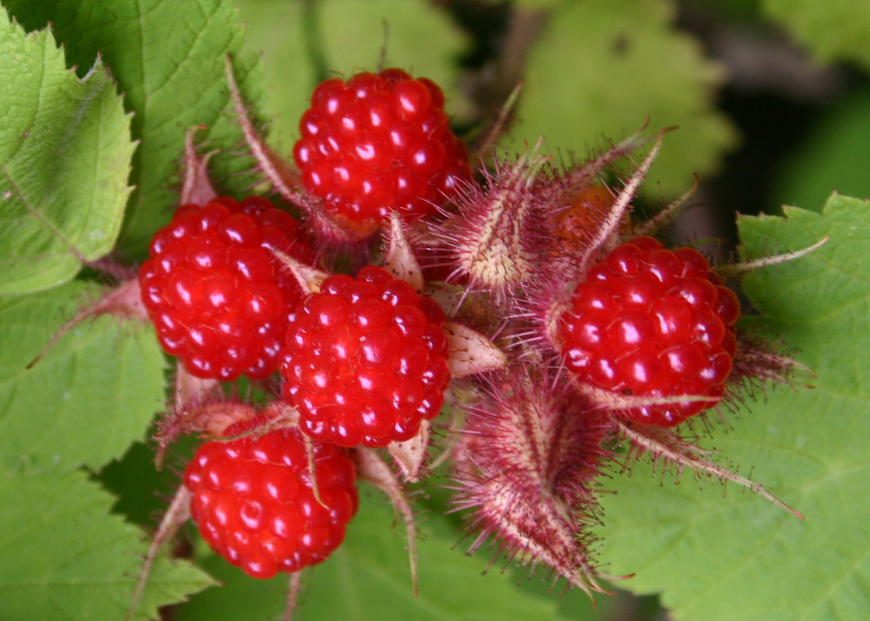 The thimbleberry represents one of the most northern forms of wild raspberry having a concentrated flavor with very tiny small crunchy seeds. This makes them ideal to eat as is or to make delicious jam and jelly. The colonies are thick and can form a monoculture of delicious wonderment. There are no thorns. The plants runner by underground stems. They produce fruit on 2-4 year old canes. It is not a cane that you remove after fruiting. You wait for it to finally die on its own. The clusters ripen over a very long period up to a month or more. This is common with a lot wild raspberries. They make you come back for more. I still believe I have cracked the code on cultivation by using my Pink Thimbleberries in southern Michigan. Thimbleberries are latitude sensitive and hard to fruit in extreme heat and dryness. The California based ecotypes I produced solved most if not all of that problem. Meanwhile thimbleberry jelly is still $17.00 dollars a jar. It can be grown from seed or cuttings. When I had the nursery, thimbleberry and wild black raspberry where the most popular of raspberries.