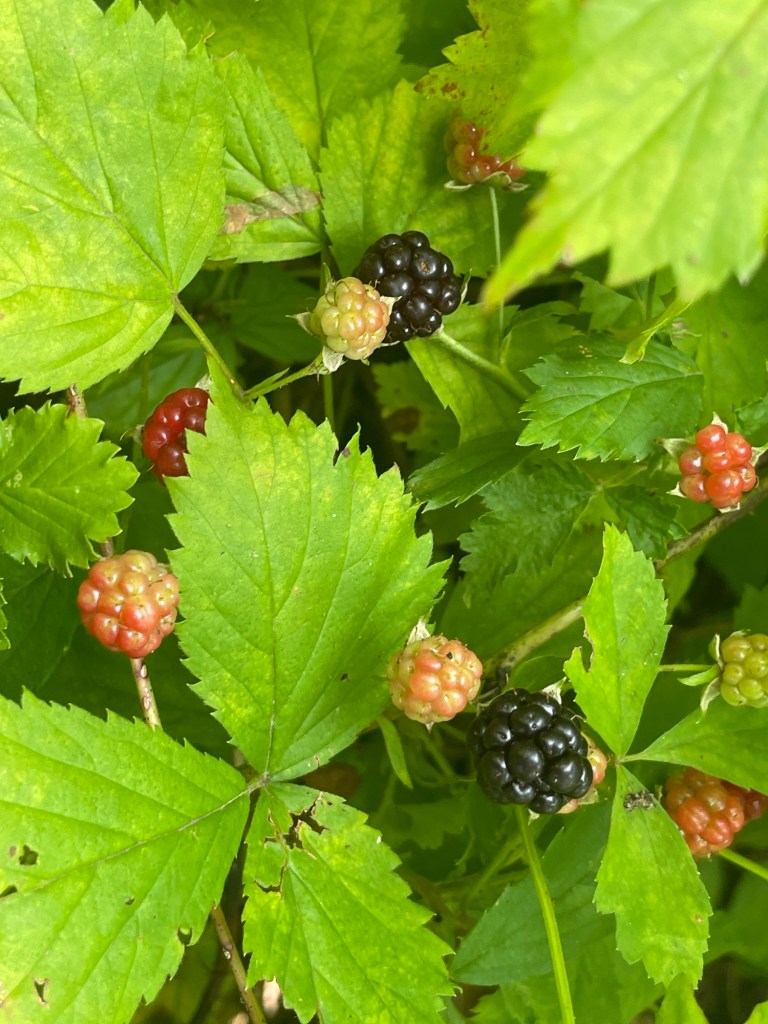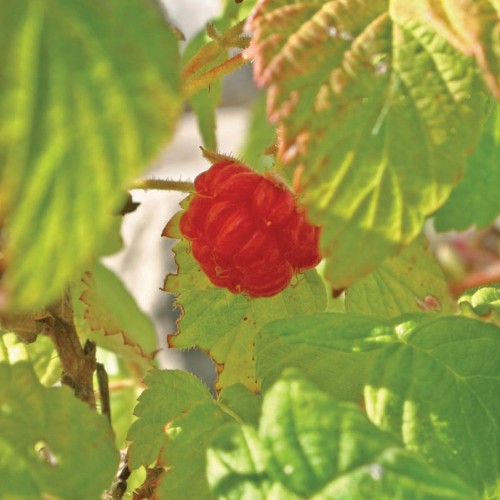 This image of a northern red raspberry on a wide open coastline of Lake Superior represents one of the most widespread species raspberries. It too is thornless and grows from runners. The seeds are tiny and it is like eating raspberry concentrate. The fruit size is small and variable depending on the colony you are harvesting from. Of any plant I have grown, it is the most powerful colony producer and has completely improved a part of my planting by creating a dense composite of raspberry mixed with Desmodium. Its thick in there. It is where the turkeys nest. It has become a groundcover only 3 foot high. You can imagine trying to get a toe hold in the ever shifting rock and sand along a windy coastline. You are going to develop a means to expand your presence by sneaking into the cracks and crevices and making do with what is around you. If you change that to an all you an eat buffet like my farm, then freedom has arrived for this Rubus family. This species despite its size and low yields is just amazing in flavor. Ironically it is found today in many cultivated raspberries too as it was a breeding connection maintained when raspberries went cultivated early on in American history.