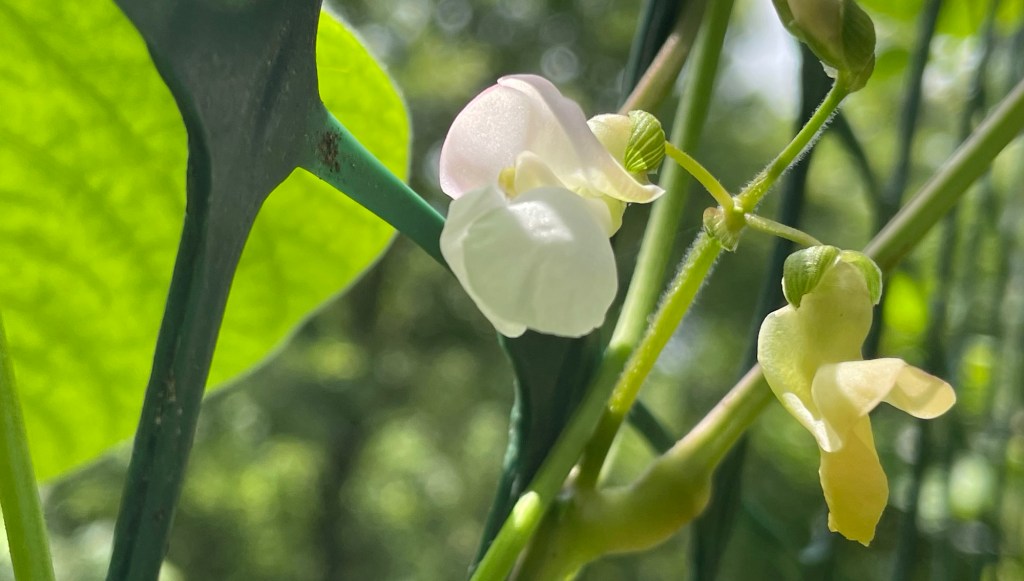 Yesterday while trying to capture insects working my bean flowers via photography , I remembered the college professor that I took an Entomology class from Western Michigan University in 1975. The whole class went out one night to a nearby state forest. We whizzed up a peanut buttter and beer concoction and lathered it on oak tree bark with paint brushes. It was a secret formula according to the intern who was totally into it. We lit up a bed sheet with a black light of some type for attracting moths. We hiked up and down the forest road to check our splotches of beer whizzed butter using flash lights. At some point, someone said, “You know if the police come, we are going to have a hard time explaining this.” There it was a giant blue white square orb in the middle of the woods. Some of the students had mining hats on. “Want some peanut butter beer officer? If you drink it, you will attract moths.” We stayed out quite late in the night. We found spiders and a few other night insects but no moths. This experience has stayed with me and highlights my thinking with pollinators today. It is constantly changing with a wide range of butterflies, bees and flies. You never know what will come if anything on any particular day.