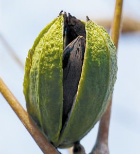 “Michigan” Selected from dozens of other ultra northern seedlings, this one selection was both the most vigorous and heaviest yielding of all pecans at my farm. Almost every year the nuts ripen fully and drop free of the husk on its own. It has long thin nuts that ripen in early October. the ripening period is spread out over a two week period. This is by far the best selection for ripening and yields on a large robust tree. It was likely one of the seedlings from the Voiles #2 seed source which was from the Richard Best orchard prior to its demise from the Mississippi flood waters. The Northern Nut Growers Association brought this seed source to light as well as others found in Iowa as possible sources of short season pecans in the northern part of its range. This was the geographical hot spot of short season pecans distributed by crows, native Americans and early settlers.