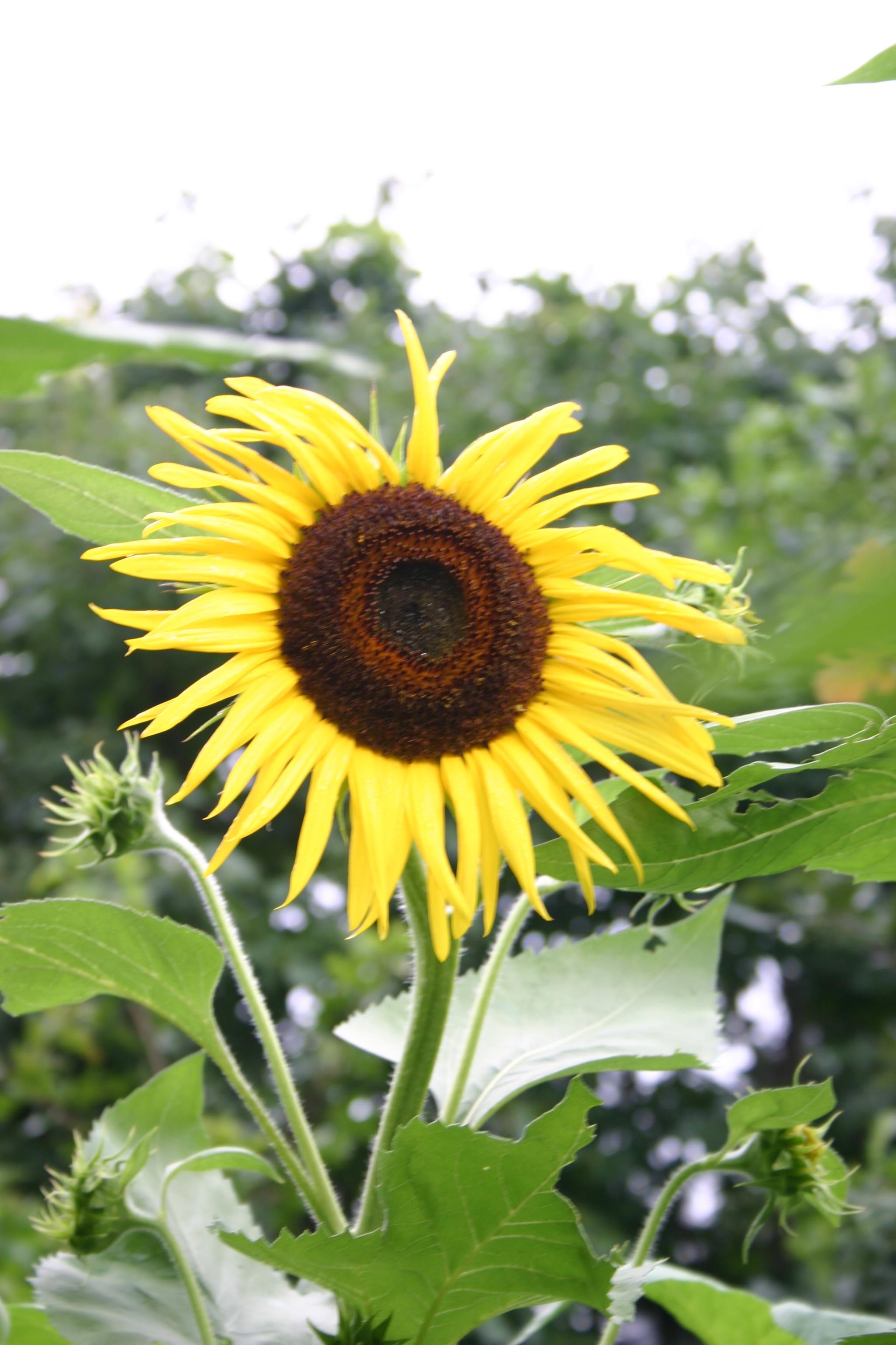 I always was fascinated with the sunflower. There was always so much activity around them. My parents decided to move to a new home when I was 16 years old. It was in a new subdivision in the midst of a suburbian utopia. My dad hired a nearby landscape architect and nursery to put in the landscape. The landscape looked identical to all the other landscapes in the surrounding homes. It had the junipers, media yews and crabapples. My dad added a few white birch clumps from the farm. Perfect. The whole thing was exactly what you would expect to see. A couple of years later, when I came home from college during the summer, I would sneak in sunflowers between the shrubs. No one noticed until they started flowering. My parents started getting good comments from the neighbors who thought it was quirky and cool. My dad found it annoying and wanted me to stop doing it. Quirky and cool was not for him. Back off on the sunflowers son. My mom liked it and soon we began to plant petunias in the front yard near the groundcover junipers. Not long afterwards, a few other people down the road planted sunflowers around their mailbox and garages. My dad relinquished and let the sunflowers live but I could not put them in great density like I did the first time. It was my landscape art. I made it look like a South Dakota sunflower field blended with a modern suburban landscape circa 1970. I call it South Dakota Suburbia. Like a well worn lesisure suit, that landscape was not all that exciting to begin with. As time went on I added northern pecan, cactus, yucca, apple, metasequoia and bayberry. The pecan and oak are still there today looking spectacular.The whole sunflower thing was attracting too much attention. To begin with the sunflowers are heliotropic attention getters. Very gawdy. Perfection has arrived. Ta-Daaa.
