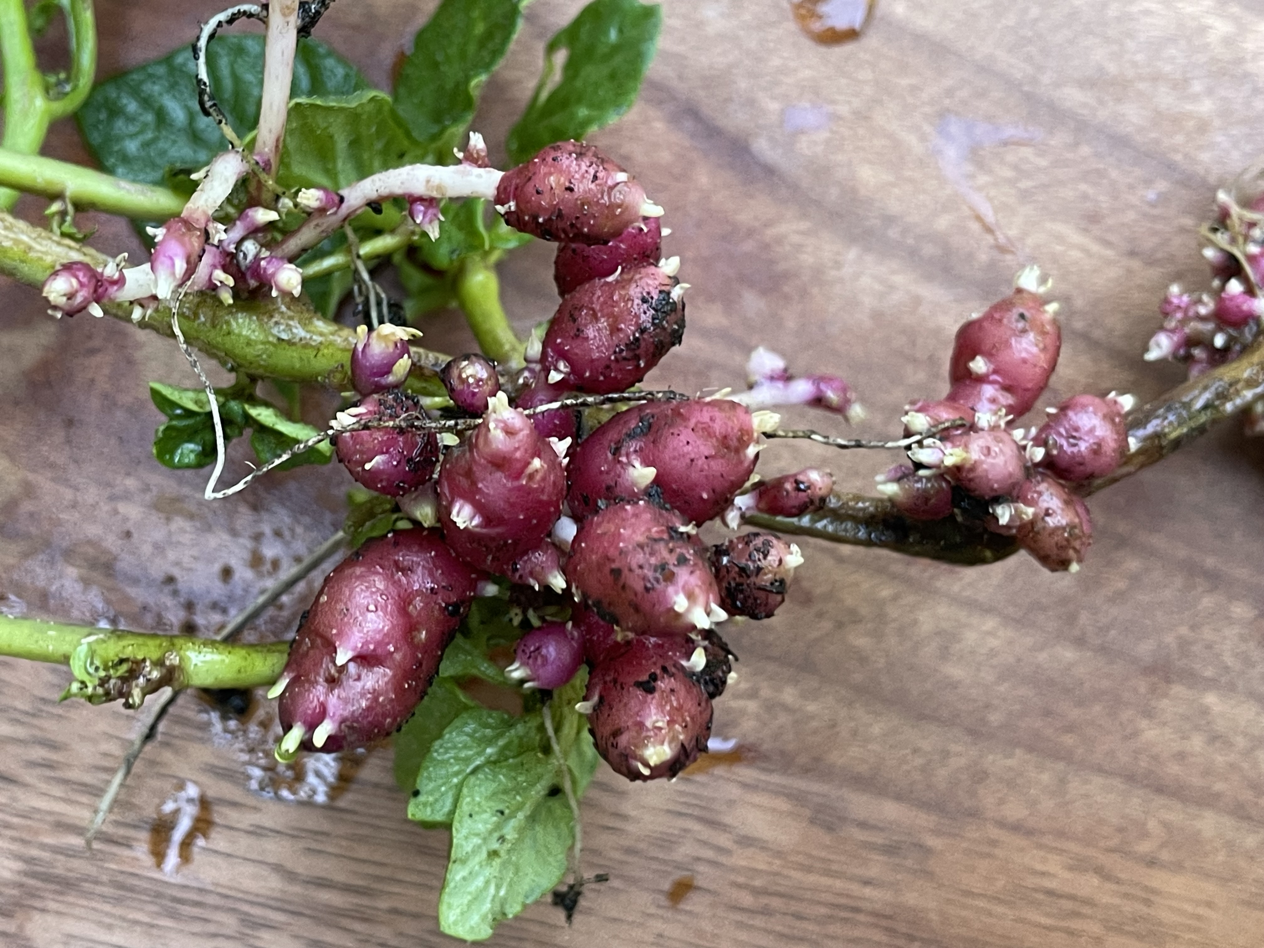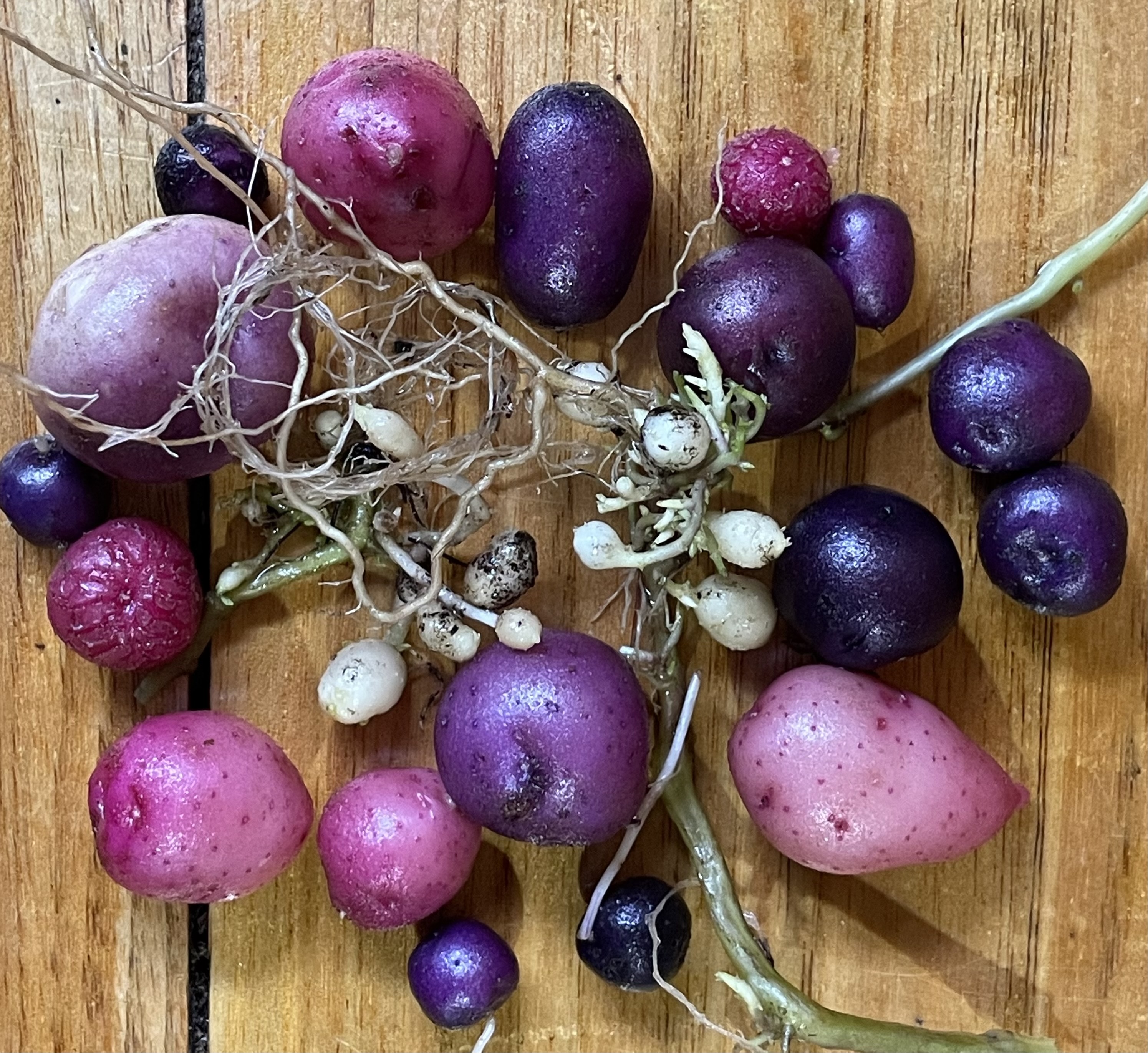 The potatoes featured in this article will be available for purchase starting in the fall and winter of 2025-26 seasons. It will be a collection of at least two selections know for its heavy production of small tubers. It can be purchased directly on the Oikos Tree Crops website under