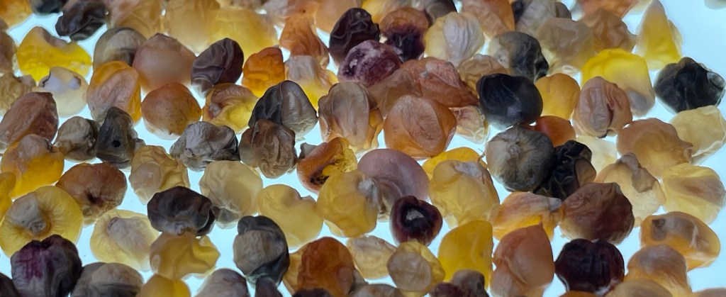 The sweet corn and teosinte cross was successful in creating another ‘corn’ that contains all corn we grow today. It pops. We can create flour from it. It has the crinkly seed sweet corn within it. Yet calling it corn drops it into a category of interesting but quasi-useless corn breeding experiments. It would be only used for breeding purposes or as a wildlife corn. Everyone would see the extremely low yields per plant and bail. This is the middle ground. Welcome to the forest of corn.