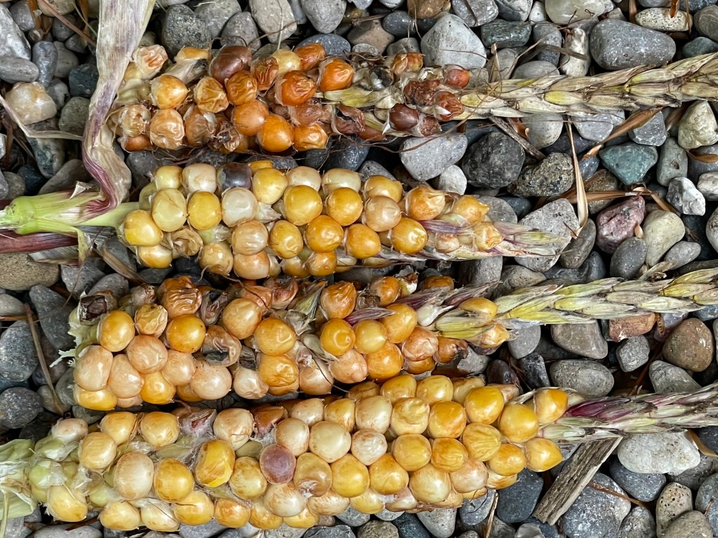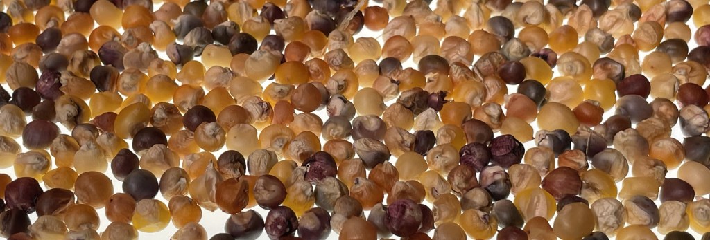 Like an ocean filled with innumerable waves, there is no end to plant diversity. When it comes to a common cultivated food plant like corn, the species becomes very uniform over time. From a population level, the ocean is calm with only a few ripples. The original two or three species that create the corn as we know are hidden from view. If you have ever seen volunteer corn in a soybean field or along the road somewhere, you know immediately corn that has departed from cultivation will not survive long. Often there is no cob or kernels. It needs our robust support system because it has essentially ‘evolved’ this way with our management systems. Even to hint at trying to breed or select something for the sake of growing corn seems hopeless to me. It is probably already in existence. Nothing is new under the corn sun. Yet there are many people who love to breed and experiment with corn especially for human consumption. It was when I started growing woody plants that made me realize the value of corn because the diversity found in the natural world is not the same type of diversity found in the corn world. A corn field is not looked at the same way a forest is. It could be. But then it would not be corn. Corn today has to be very uniform. What if it could be the opposite?