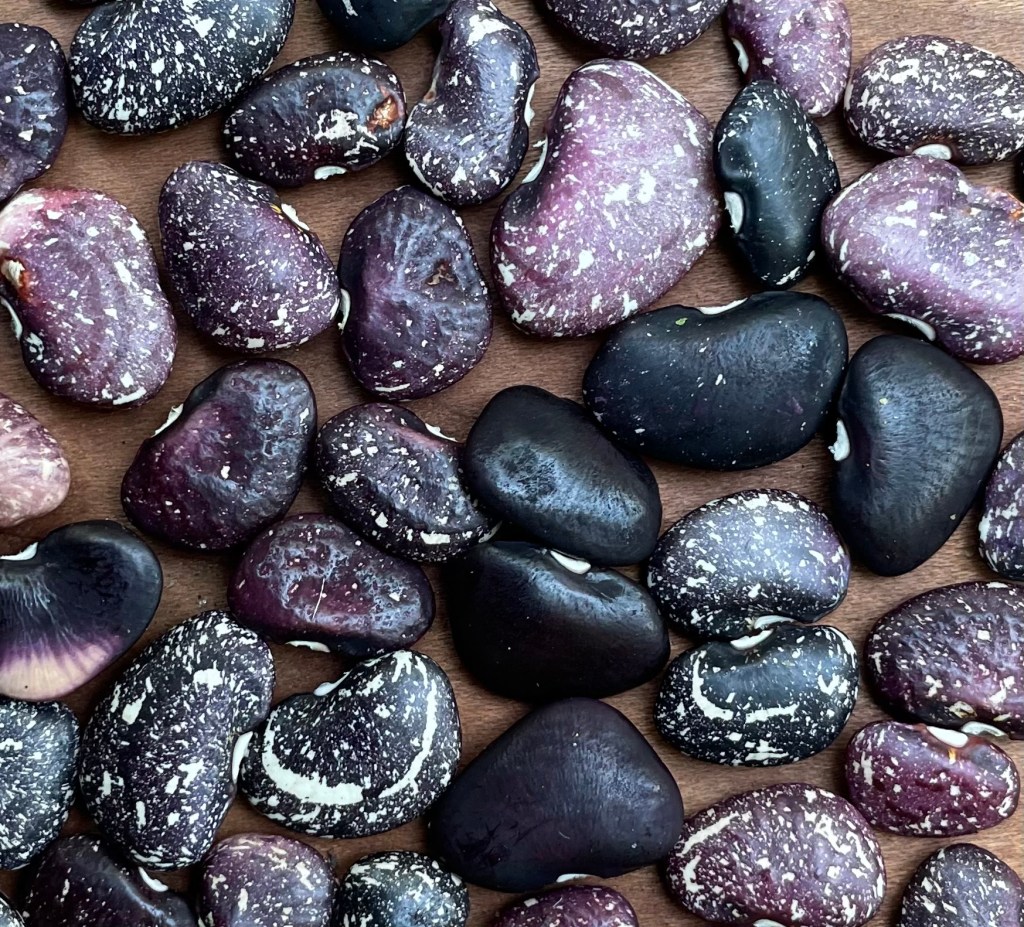 This week I uncovered these blue lima beans only because they had something that was hard to find and unexpected; all at once early ripening. That may not seem like a big deal but for years the limas that I was fostering through hybridization with their perennial cousin the thicket bean were creating very vigorous and unexpected results. These side light populations are beautiful but you need to have something very uniform in ripening with husks that split open easily expelling the beans. It makes cultivation much more practical and easy. There were only two plants. I have both the white speckled and blue versions. The yields are high all along the vine and not overly vegetative. For me it was a great discovery.