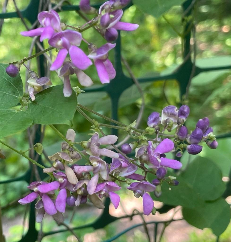 If you mention the words ‘Hog peanut’ it is not likely to get you the good seats at a concert. It’s confusing. Why hogs? And is it a peanut? I have never seen the flowers close up until this year when I put a cone of chicken wire around the plants and added fish emulstion to the soil mix. At five feet high the flowers and beans are prolifc. The flowers are at the ends of the vine and branch off the main ‘trunk’ like a tree. This structure produces a huge amount of seeds. From the variety ‘Crispy Snack’ I now have enough diversity to create the first ever hog peanut planting devoted entirely to this wonderful nitrogen fixing plant. I will not get the front row seats to REO Speedwagon though and apparently hog peanut cannot help me there.