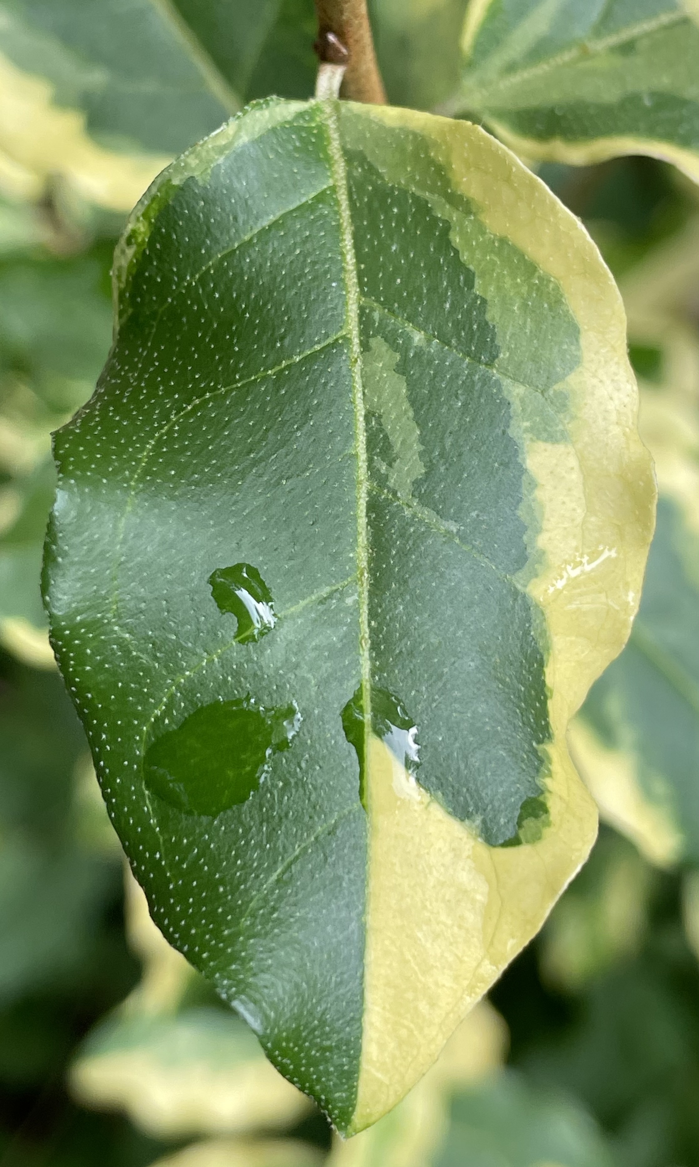 Under a powerline ground to sawdust by the tree services of Consumers Power is an autumn olive bush which resprouted creating this one bud sport or sprout which is variegated. From a hundred sprouts only one is variegated. Variegation can be short lived or fade altogether in the years to follow. Variegation is attractive in the ornamental world we live in. There are many variegated Oleander family members like the autumn olive already in existence. This is the second autumn olive variegated seedling I have seen in my years looking for unique plants. Many years ago, a colleague of mine sold a variegated hosta plant from his nursery in an auction for the Hosta Society for over a thousand dollars. Why? It produced all variegated seedlings. That was something that was not found in other variegated hostas at that time and would make it easy to develop new hosta varieties. Hostas are highly propagated and valued. Not so much with autumn olive despite its use as a delicious and healthy fruit crop.