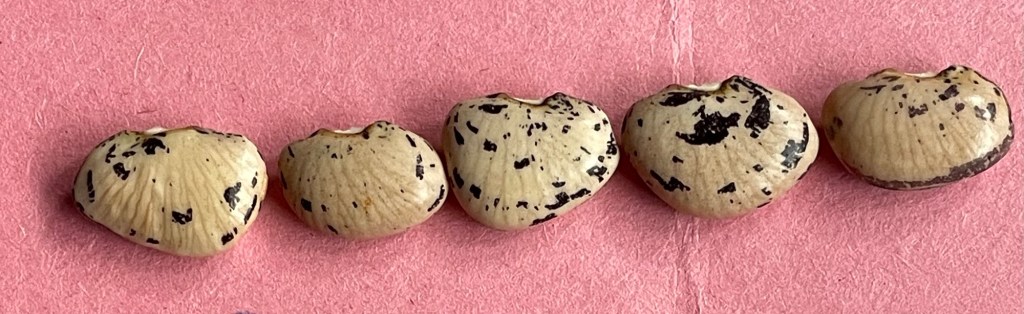 I know little about the technicalities of plant breeding and even less about beans. I love beans but I am not a bean breeder or know what sort of ‘shenanigans’ they are up to in terms of combining traits or developing varieties. When I first tried to create natural crosses of the thicket bean to create satellite populations, everything was too separated by time and space. First I tried to flood the area with tepary beans only because to me they look like the thicket bean. There is a subspecies of tepary bean that is perennial. I thought it was a good fit. The goal was to create a cloud of beans and inter-weave plants within the cloud and hope for the best in terms of cross pollination. This works with oaks very easily but they are wind pollinated. That is where I got the idea from. It turned out that the tepary branch of the bean family was too far away to connect genetically. It would be like crossing a red oak with a white oak. It is not likely to happen. The tepary beans engulfed the thicket beans. It looked impressive. I did enjoy growing the wild selections from Native Seeds from the southwestern U.S. The following years I planted several varieties of lima beans because I read they were much more closely related in their family tree. The thicket beans were on a nice long trellis flowering in August and the lima beans were in a series of cone shaped chicken wire trellis’ ten feet away flowering in June and July. The gaps were just too big in time and space. They will never meet during the pollinator banquet. I did raise a nice crop of Christmas limas in the process and became familiar with the lima bean during this time.