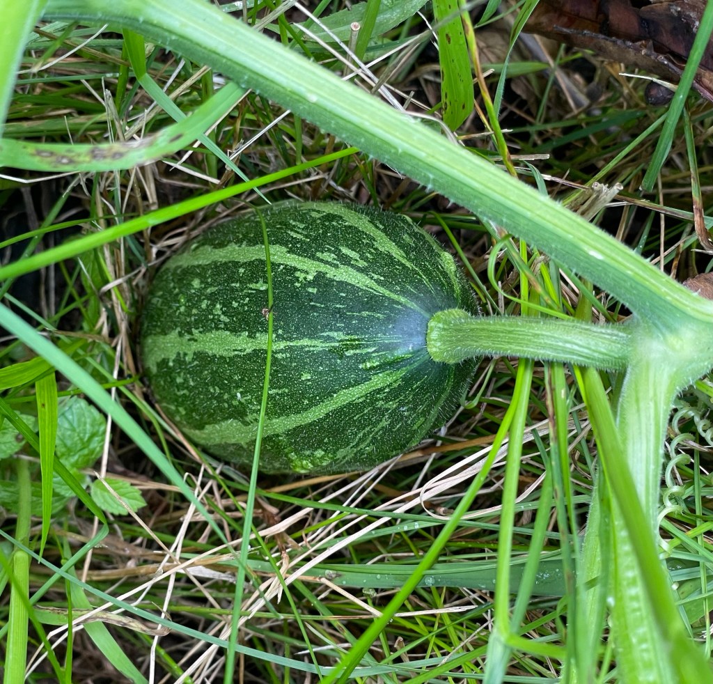 This year a new form of gourd emerged that kind of looked like a spaghetti squash but densely packed with seeds. It had been around earlier and came and went in the population. The deer and groundhogs did consume a portion of the fruits too. That is unusual and a good sign. Maybe they were just hungrier than normal this year. I’m not sure. I could start there to check for the bitter alkaloids as a larger mammal had a role already in selecting it and so far no one that I could tell died in the process. It looks like the groundhogs were eating most of them and one currently lives under my office where he vacations during winter. During this consumption process, the fruits are only half eaten meaning it too would self regenerate the following year without a truck driving over the top of it. That is a great benefit in many ways helping in distribution. You could imagine using the plants as a sort of soil stabilizer in the mix with wildflowers shading perennial plants as they establish. In the end you want a stable end game to the whole dynamic population. This will allow then for greater diversity to emerge if it has to happen in different environments. I found out that the mildew produced on the leaves slows the end of the vine and hastens ripening of the fruit. This signals the season is over for the plant. Each vine does root on the nodes to which further increases it drought tolerance, immunity to vine borer and general overall vigor.
