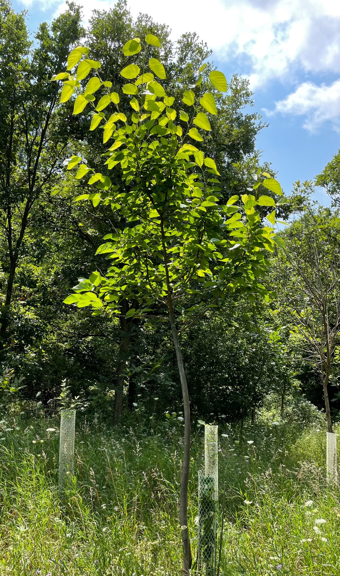 The range of any plant can vary tremendously from high to low elevations, across whole continents not to mention human introductions. With many woody plants, these are not entirely reflected in the selections available in the nursery marketplace. It was this winter hardiness factor that interested me when I grew palm trees in Michigan. The Chinese Windmill Palm had a large range of adaptability and did survive here much longer than I expected. I was wondering if other plants had a broader range of hardiness and where I could find those. One of those was the black mulberry. It was considered a Zone 7ish plant and not hardy enough to survive Michigan. There are no wild black mulberry trees to draw germplasm from. The species Morus nigra was never used to any degree in the United States compared to the well-known species of Russian and White species which were staples of the conservation industry. They were the windbreak and fruit bearing trees for wildlife including the trees used for silk production which never came to fruition. I initially started growing black mulberry from the grafted varieties. I found four Pakistan selections with huge fruits from a nursery here in the U.S. only because that was all that was available. They are also food selections bred for human consumption. I think anything with ‘Hunza’ attached to its name sounds mystical to me. Maybe I can live to 100 years old too if I eat mulberries. The selections grew vigorously. I loved the large lustrous leaves. When winter came and went there was no live tissue left. Only a brittle stem remained. I remember walking by the sprouting trees below the graft union thinking at least I got a rootstock out of it. A week went by, and those sprouts disappeared via white tailed deer. Maybe not. Time to move on.