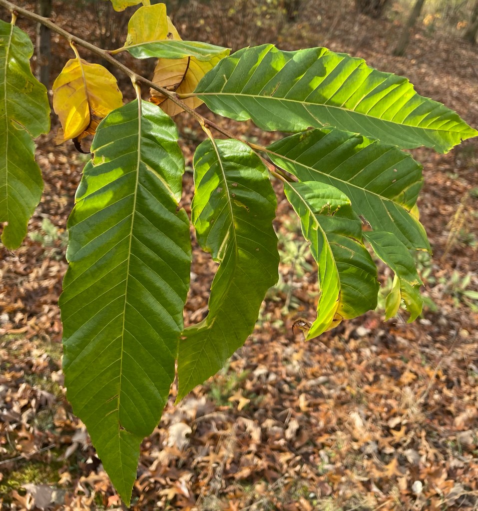 When I was first introduced to the European chestnut, I found it as a shrubby and stunted tree barely able to cope with Michigan’s cold winters. It was on top of a dune overlooking Lake Michigan near Grand Traverse Bay. The view was spectacular. It was a cool late October day and the cold wind off the lakeshore left me speechless. The tree’s size was further highlighted by an American chestnut next to it that was in pristine condition growing ever so vigorous and strong. I knew that this particular species of chestnut was probably not adapted to Michigan. I collected two nuts from under its branches thanks to the owner who helped me find them. It wasn’t easy. Deep in the grass, we pryed open a few burrs only to find those two precious nuts.