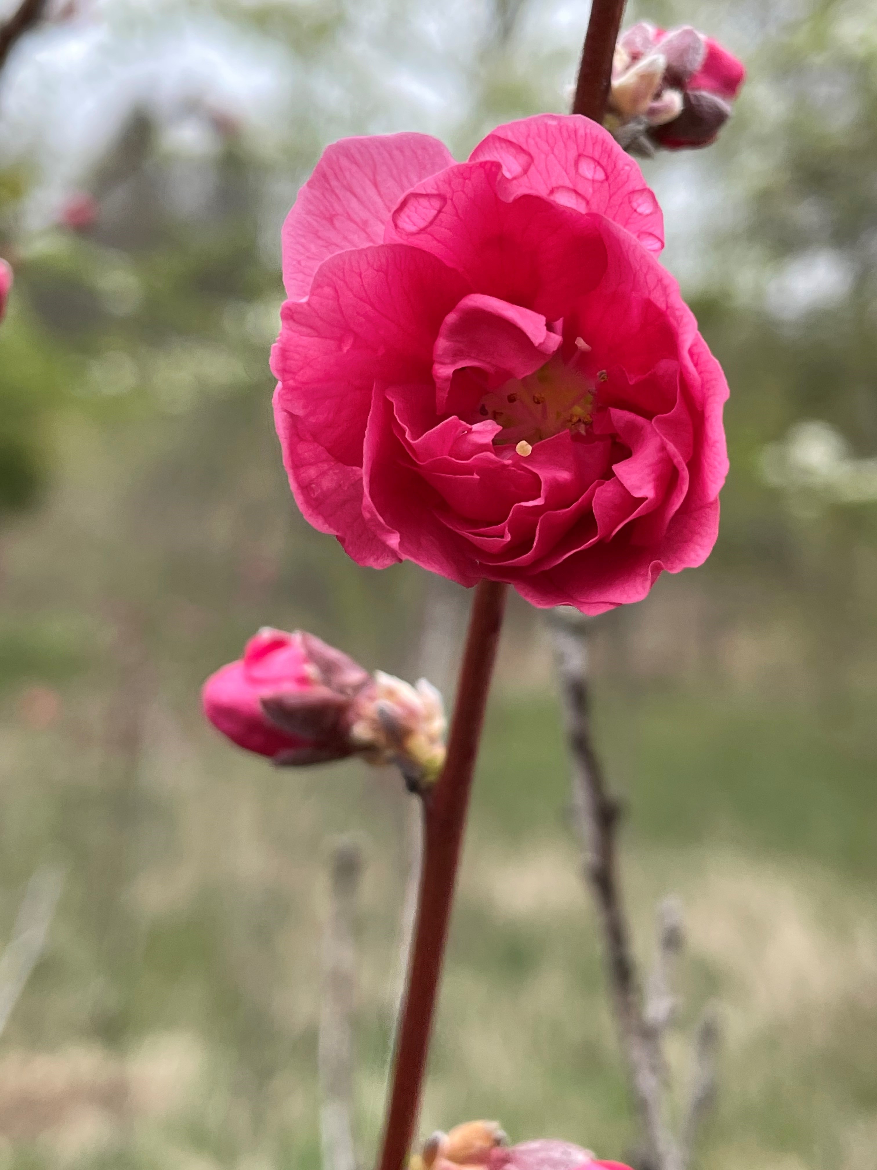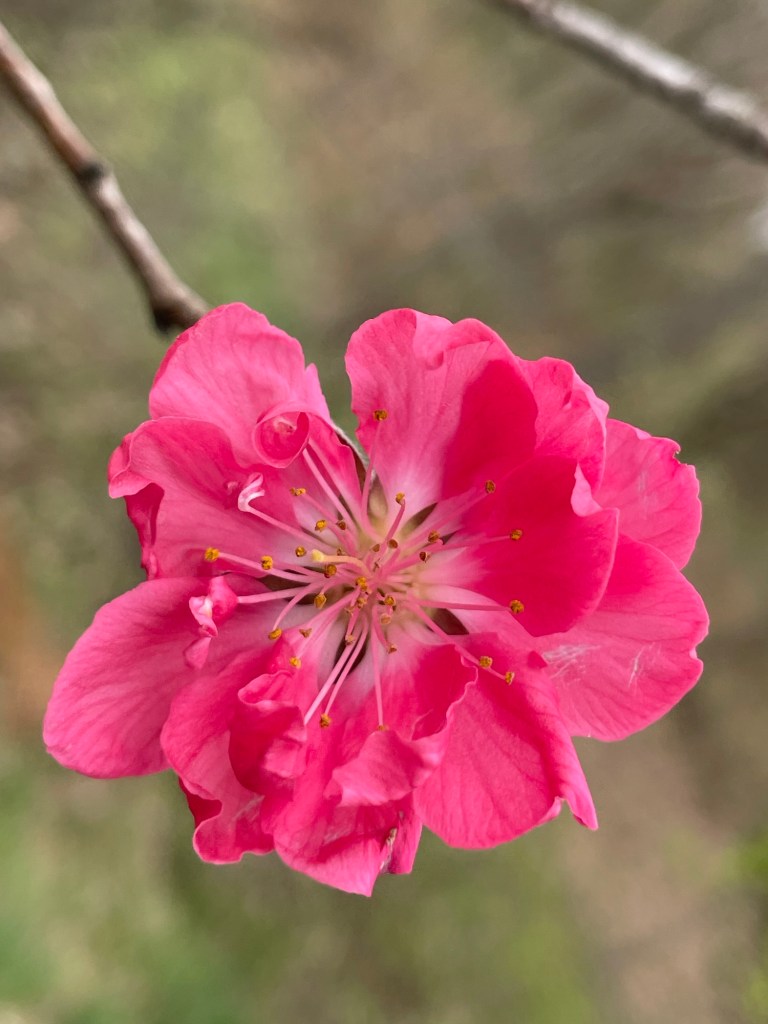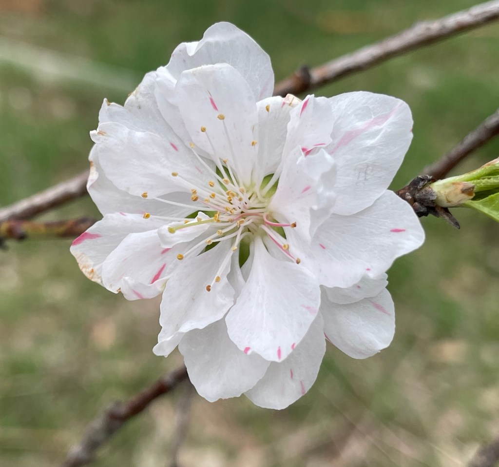 My plants in my polyhouse were very vigorous and twiggy. They began flowering in two years from seed. Obviously deep within its constitution was the precocious double red flowers. Despite being a lone tree in the front of an old farm house far from any peach tree, this tree had a story to tell of its past. The image above shows the surprise. The trees produced small, white and coarse fleshed mis-shapened peaches. They ran in size from 1-2 inches and looked like miniature furry tennis balls. They were pleasant to eat but they were not familiar in terms of their overall peachiness. They were the peaches with minimal peach flavor and maximum floral characteristics. It was like eating the seedless green grapes in the grocery store. This peach was also selected by humans who loved the flowers and did not matter what the fruit was. Jackpot. The value of the plant is its ability to comfort humans. The flowers bring happiness. This is a great goal. It is food for the mind. Could it be possible to create a forest of peach trees where you could just walk around and marvel at the glorious flowers in the spring while imbibing the essence of peach? Absolutely. Why aren’t we doing that? Whoa. Not too fast there agri-buddy. That peach pit needs more grinding on the wheel of human intellect and creativity before it sprouts.