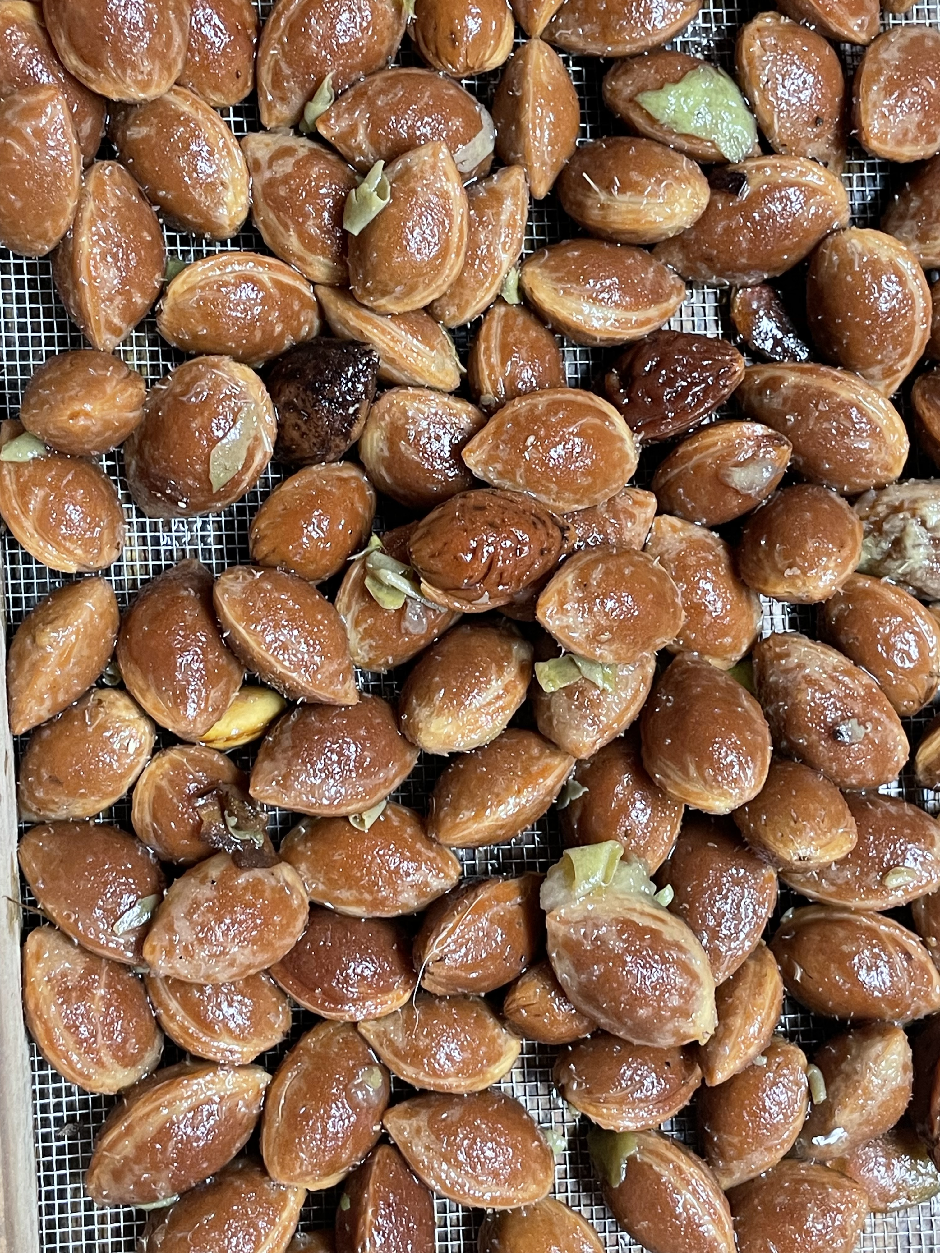I brought them back to my farm where I cleaned them and began the dormancy procedure. The barn was filled with a great fruity aroma that day far more pleasant than the pile of rotted fruit let on.With peach pits, it is a good idea to let them dry down a little on screens before putting them into a lightly damp peat moss mixture. It is best to store them at room temperature until December before refrigerating them from 34F to 39F for 60-90 days. The warm period continues the growth of the embryo which allows the seed to mature. Sometimes a portion of the peach pits take two years to sprout. Part of this is due to the incredibly hard pit and tight suture and the other is the immaturity of the embryo. To over come this, we use to put them on a bench grinder with a coarse grit wheel to remove a portion of the suture on one side. We would hold the pits with Vise-grips as we sanded away one by one. That was my ‘good idea’. The pressure to pop that pit must be immense. In the evolution department the ‘good idea’ of peach pit survival tactics is to spread out the years of establishment and go dormant for long periods of time if the conditions are not conducive for growth and reproduction. This is exactly how and why peaches are spread out in the wild in the southwestern U.S. and how they were moved by humans throughout time. Peaches are loved everywhere and the pits were pitched by people on the move. There are peaches in Germany moved by the Romans. There are peaches in the United States tended by Native Americans moved by the Spaniards. Peaches get around. And to think it all started in China.