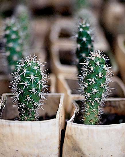 To grow cactus from seeds is easy. You whizz the fruit in a blender and then strain out the seeds. The seeds are incredibly hard, and the blades of the blender do not grind up the seeds. We would sometimes run it in reverse to prevent damage on some seeds we did this way. Be prepared for massive amounts of clear gel which is very thick. The whole blender mix would turn to a clear slime with only a handful of fruit. After the seeds are washed thoroughly through a screen, we would put them directly in a flat of a 50-50 mixture of Canadian peat moss and sand. The flats were heavy after they were watered. The seeds were tamped in just under the surface of the soil. It took a couple of winter cycles outdoors in an unheated polyhouse before they sprouted fully. The seeds I was most excited about were species of cactus found in cultivation. I was potentially hoping to find hybrids with good fruit production and with unique low or no thorn selections and large succulent pads for eating. During this time, I found several specialty cactus companies with available seeds with distinct origins like the prairies of Alberta, Canada or the coastline of New Jersey. This combination quickly improved my cactus town in terms of diversity. What I wanted most was full seed production of cactus. This was now possible because the fruiting was complete and some hybrids began to show up in the progeny as well. Now we have cute little baby cactus. When people who propagated for me began planting the cactus flats, they always remarked how cute the little cactus are. They were very cute. Maybe not baby hippopotamus cute, but close in the world of plants.
