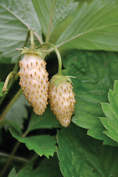 One of the most common and widely available perennial edible groundcover plants is the Alpine strawberry, Fragaria vesca. I grew as many as I could find in the seed trade. Unlike regular strawberries, Alpine strawberry varieties are grown from seeds. Much of the varietal selection comes from people who like the dainty and small low yielding plant as part of an edible landscape. At the time, we had roughly a dozen types growing at the farm. Many we produced in paper pots in the polyhouses. This allowed for an even germination of the teeny seeds. You would press then into the surface of the premoistened soil. You had to make sure not to hand water them otherwise the seeds would float away down the cracks of the pots. It was a delicate operation so we would use super fine misters. I discovered it was true that light activates the cotyledons within the seed which then causes the seeds to sprout. The cotyledons turn green prior to sprouting and growing ‘true’ leaves. Birch seeds are like this as well.