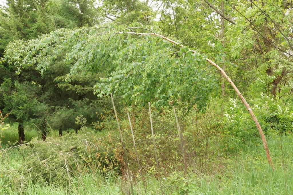The weight of the seed. The Chinese red birch bowed to the ground upon which it emerged.