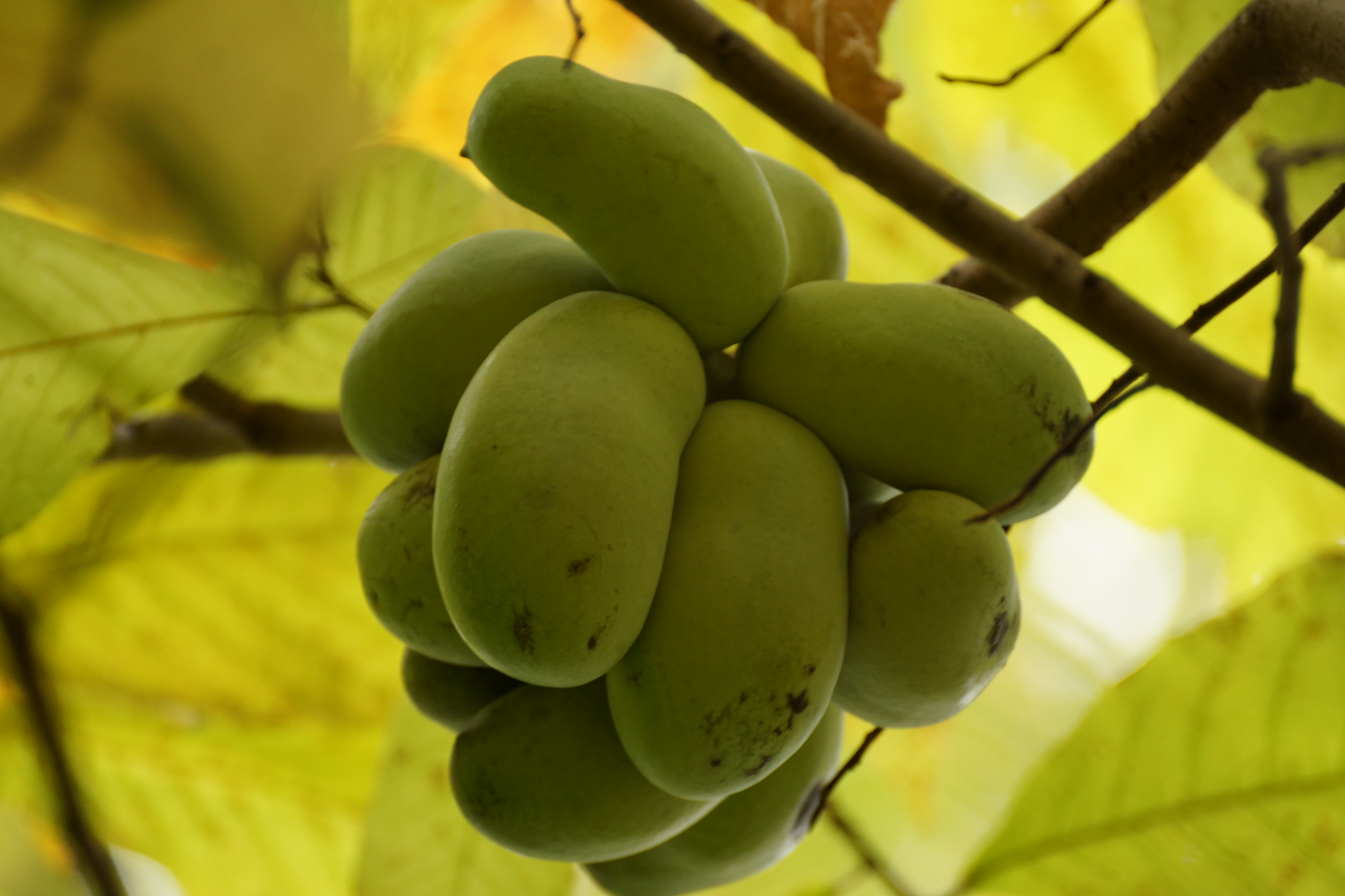 Largest pawpaw cluster discovered so far at the very top of the tree.
