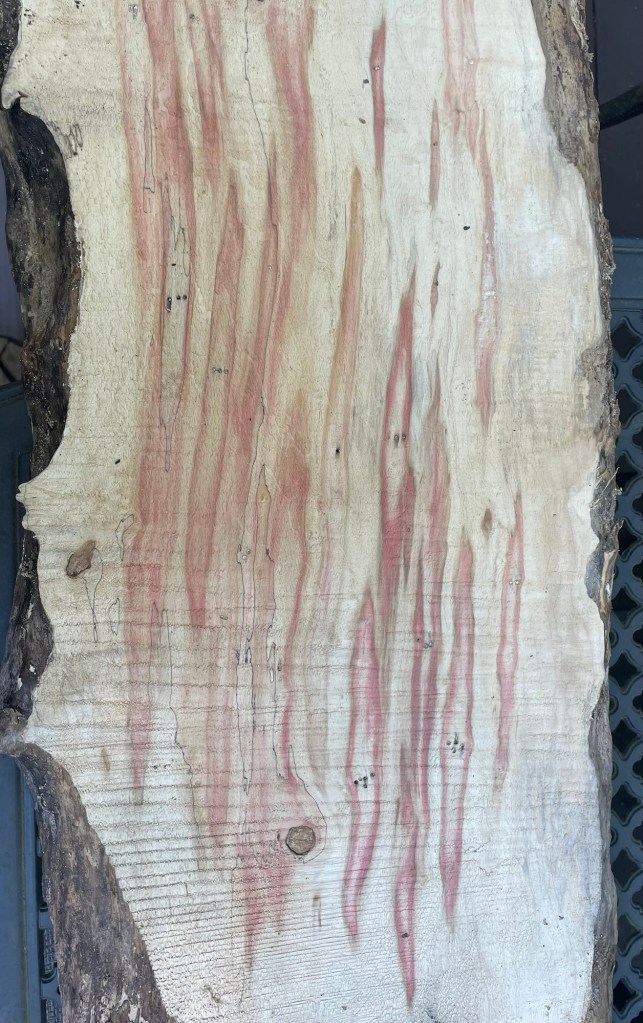 A beetle lives in the box elder tree. The excretion from the beetle causes red stains in the wood.
