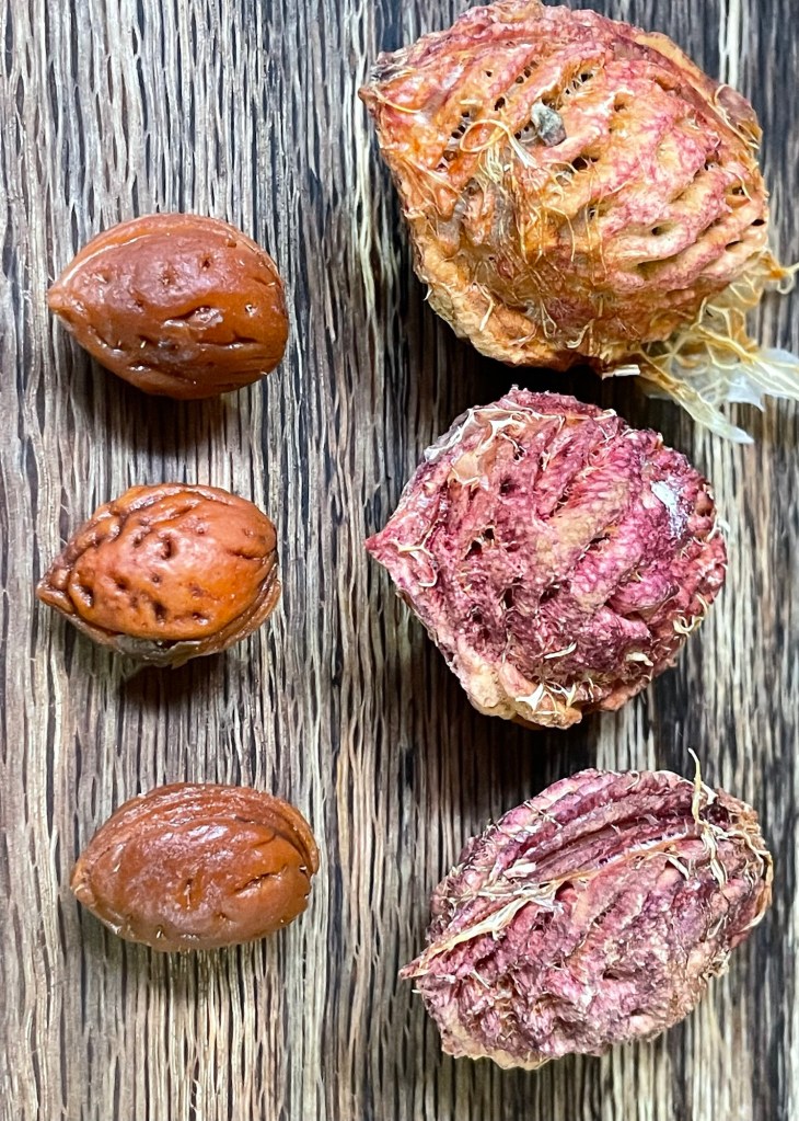 From the level of the pit, the peach much like the lotus seed can have a dormancy lasting decades until the right conditions for germination. The pit itself has a high modulus of elasticity making the seed coat impervious to breaking. Only the suture can split and release the seed intact. At my farm, I’ve noticed that even squirrels and chipmunks do not bother. Every once in a while you will see the incisor marks on the outside of the pit. It’s futile. The chipmunk tells his friends, ‘Won’t work. Modulus of elasticity too high.’