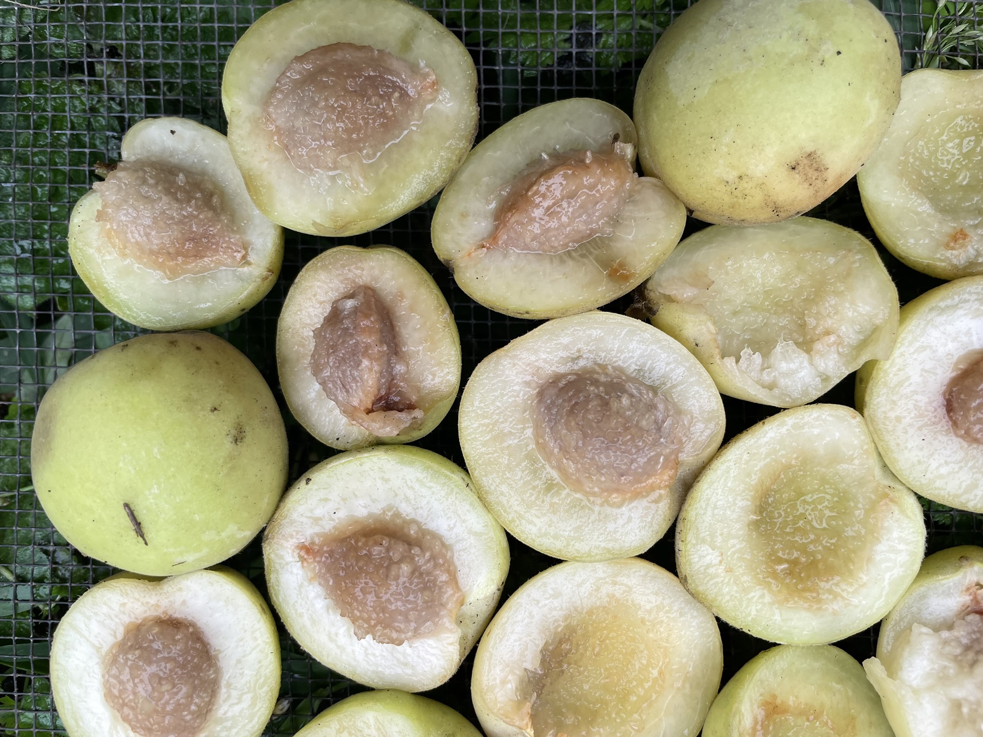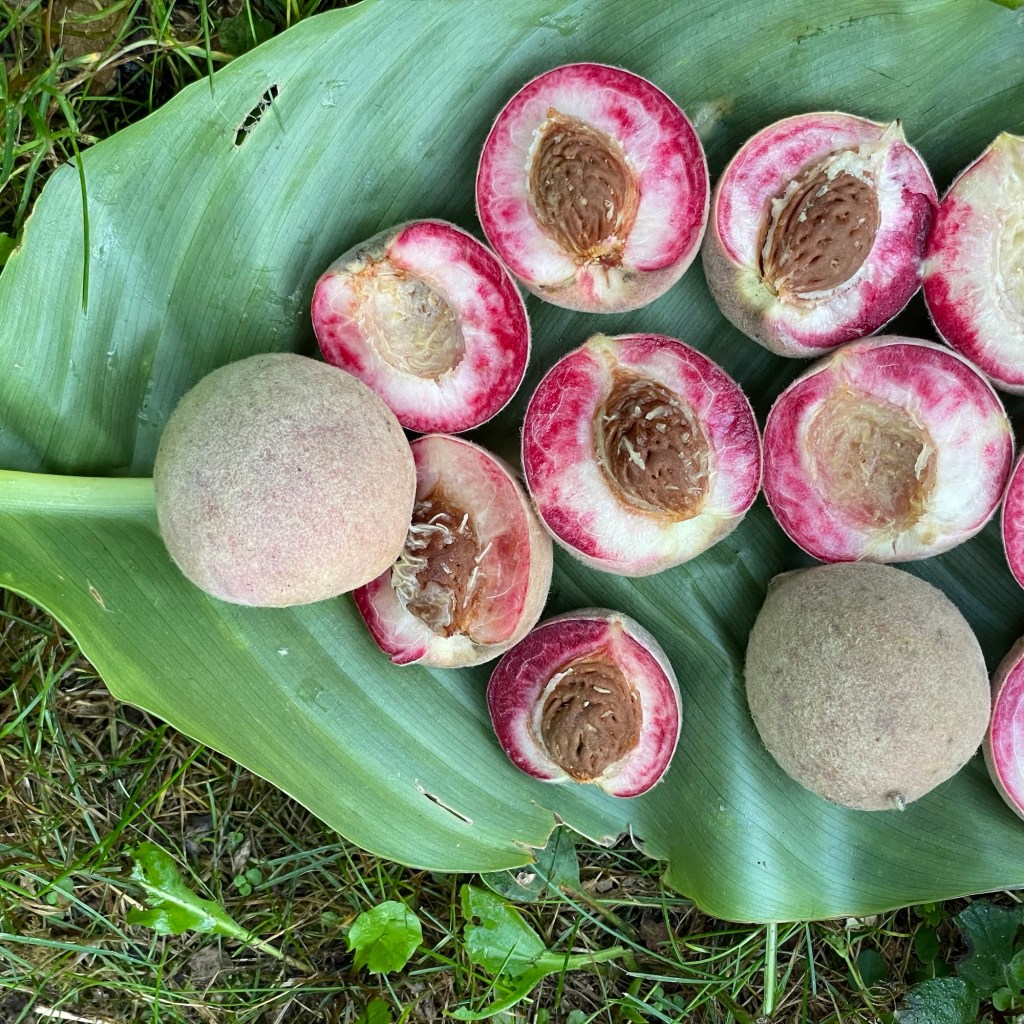 As time went on and they began to fruit, I grew very fond of these seedlings because they were very immune to insects and disease. That was a surprise because untended peach trees that I knew in peoples yards were always riddled with insects and large brown splotches of fungal disease. Frankly, I think it was the fuzz. Praise the fuzz. You need thick fuzz which ironically has been selected to be minimal on peaches today. They could be grown organically AND from pits. The quality was very good. Did I find nirvana? Yes. Every time a new fruit ripened for the first time on a tree, I yelled out in great joy, “Are you kidding me?” as I tasted them. How is this so good? The peach ripening on the tree is the only way. The small variation is less of concern.Equally, there is less selection pressure by humans for the desired traits of modern peaches which are highly refined. The peaches from pits flavor was let go in the process in finding a stable from seed tree with good fruit set. This highlights a common frustration I have. I need a larger grow out to test, refine and prove my selections and increase the pit production. 10 acres would be ideal. Maybe if I pony up at the table with the chemical companies, I can chip away at those magnificent funds they compete for from the state of Michigan. Even if my selections were rooted or grafted to put into an orchard, a true from pit population is stable enough to do it commercially. The pit thing just needs to be ramped up to test its merit. Organic and from pits? It can happen.
